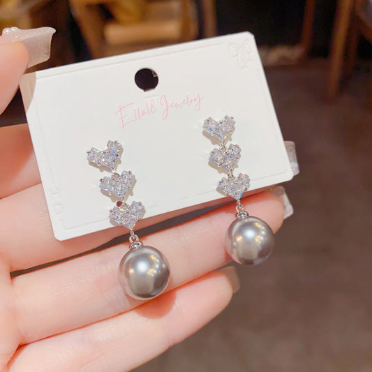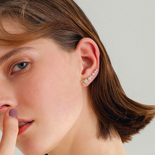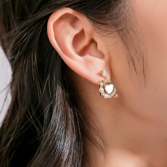 14K Gold-Plated Simple And Exquisite Zircon Love Heart Pearl Earrings