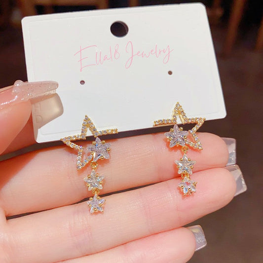 14K Gold-Plated Unique Design Exquisite Zircon Star Earrings