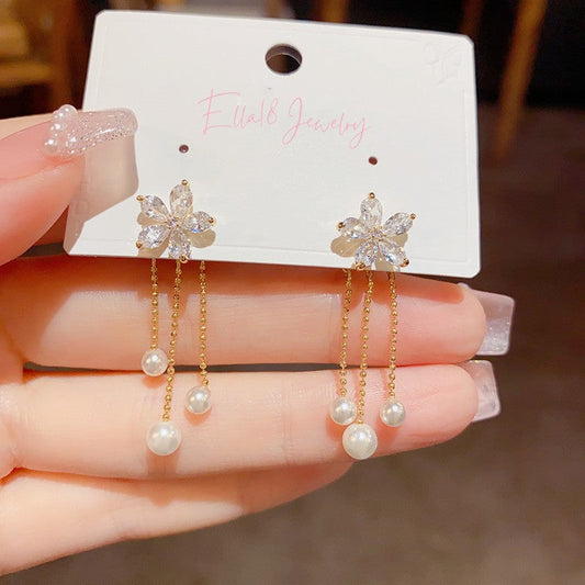 14K Gold-plated Zircon Flower Threader Earrings
