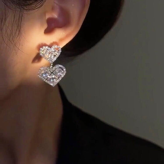 14K Gold-Plated Zircon Double-Heart Earrings