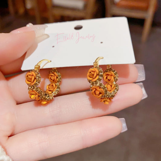 14K Gold-Plated Unique Design Sweet Zircon Flower Earrings