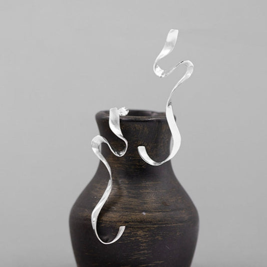 Sterling Silver Solitaire Wave Heartbeat Earrings