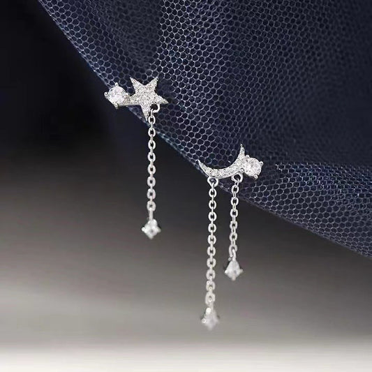 Sterling Silver Wavy Star And Moon Threader Earrings