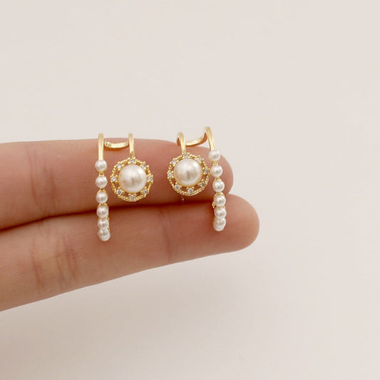14K Gold-plated Half Circle Double Pearl Stud Earrings