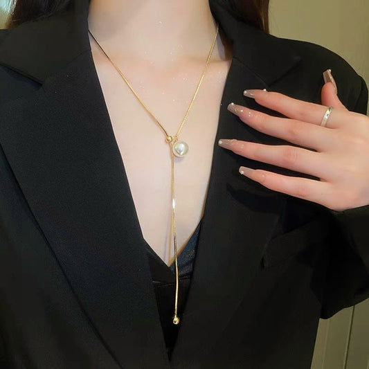 14K Gold-Plated Adjustable Pearl Titanium Steel Necklaces