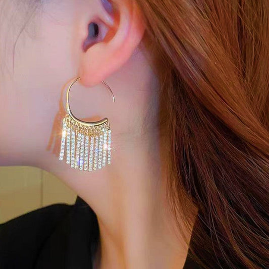 14K Gold-plated Tassel Luxury Diamond Threader Earrings