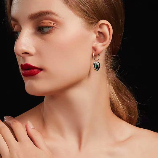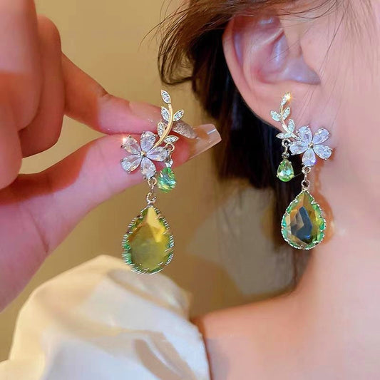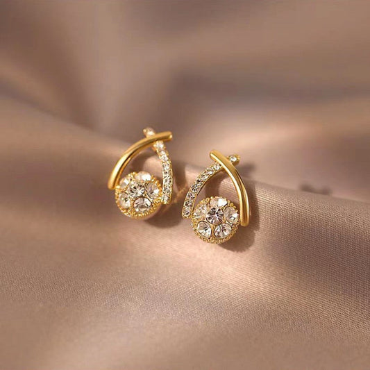 Silver Post 14K Gold-Plated Zircon Flower Leaves Earrings