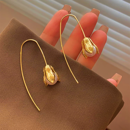 18K Gold-Plated Flower Artificial Pearl Threader Earrings