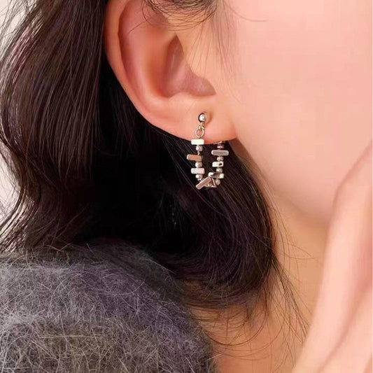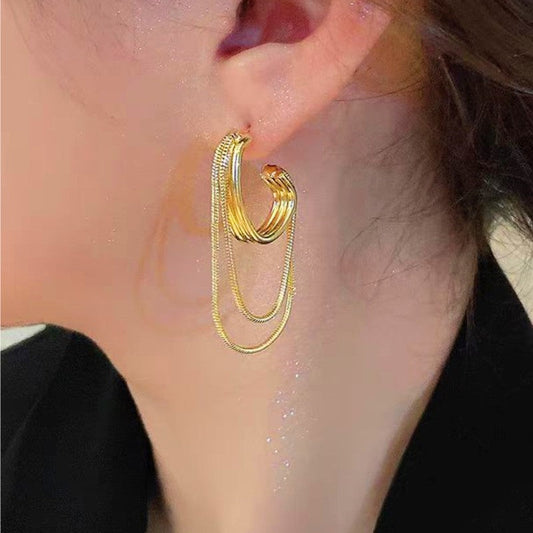 Silver Post 14K Gold-Plated C-Shaped Double-Layer Chain Earrings