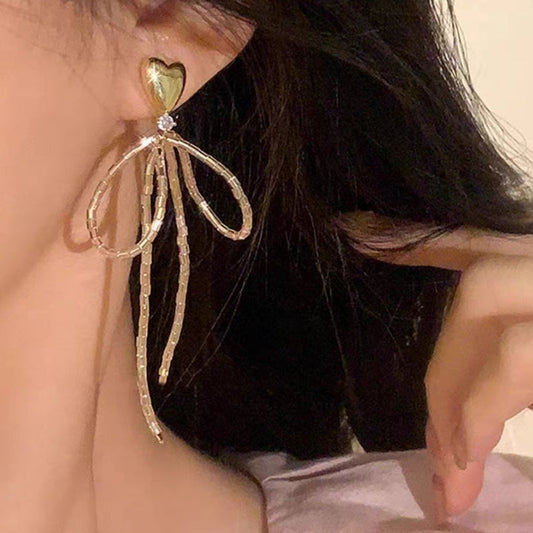 14K Gold-Plated Elegant Heart-Design Crystal Bow Earrings