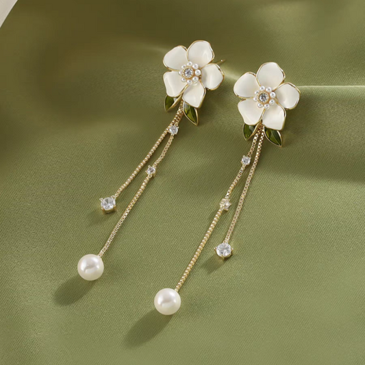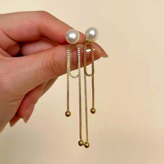 14K Gold-Plated Exquisite Long Pearl Tassel Earrings