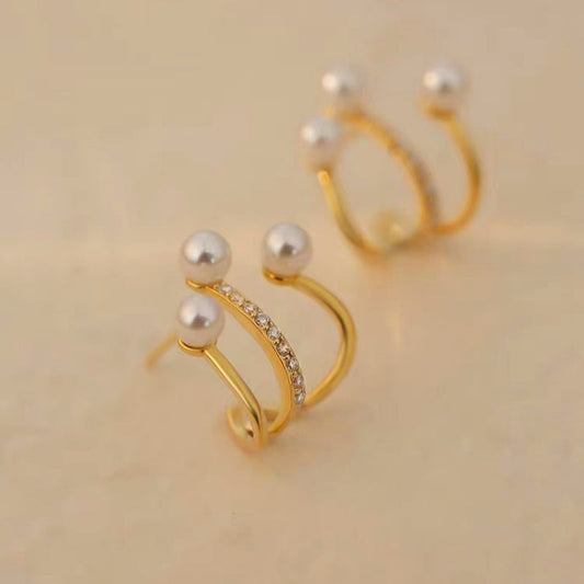 14K Gold-Plated Diamond 2024 Pearl Earrings