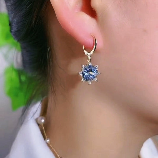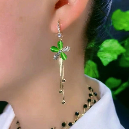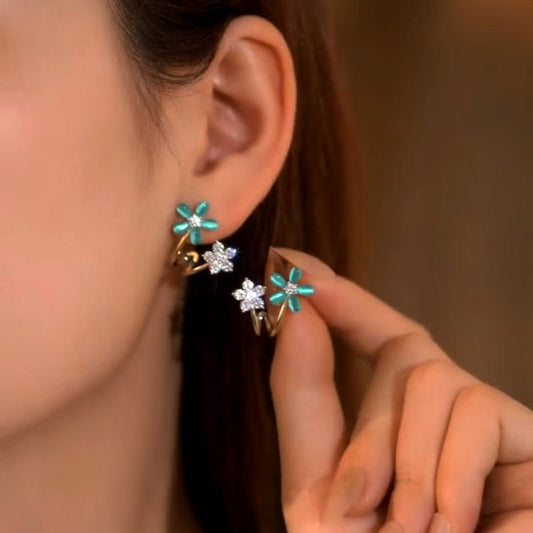 14K Gold-Plated Elegant Green Flower Ear Hooks