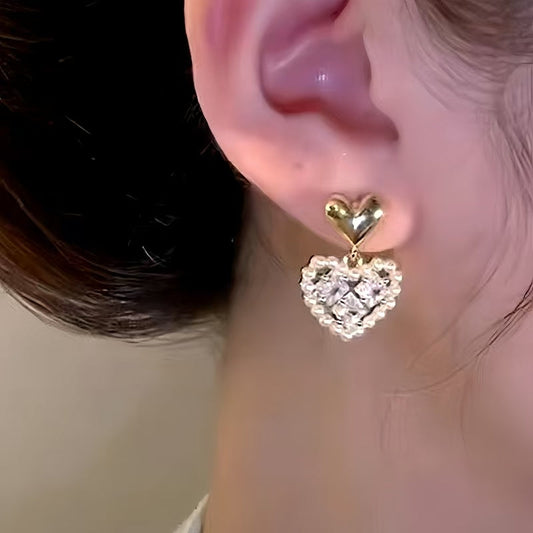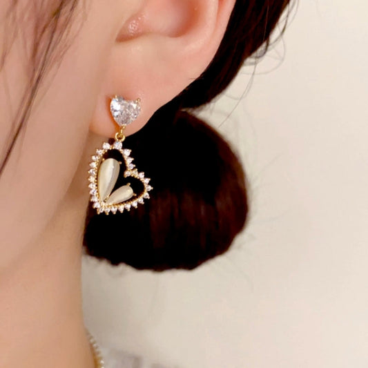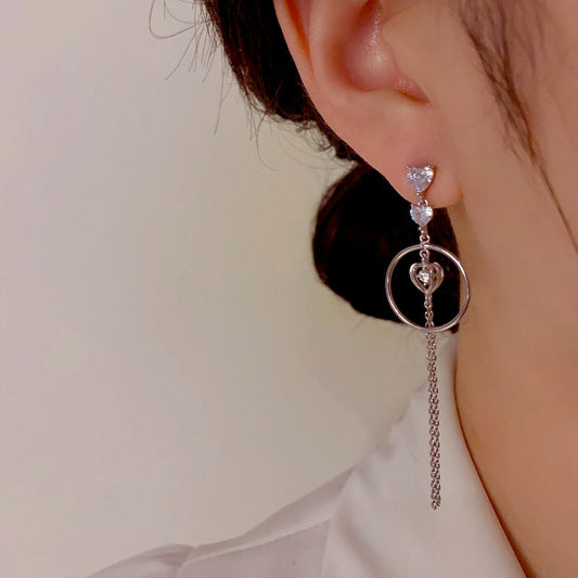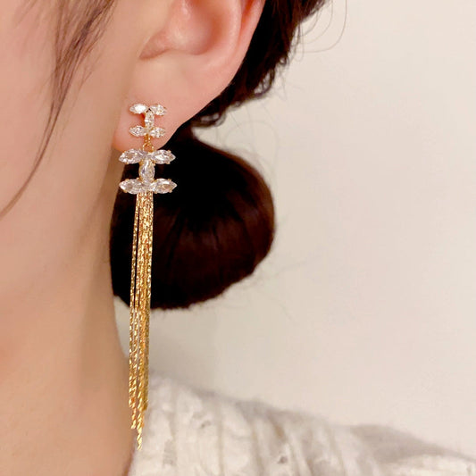 14K Gold-Plated Zircon Heart Tassel Earrings