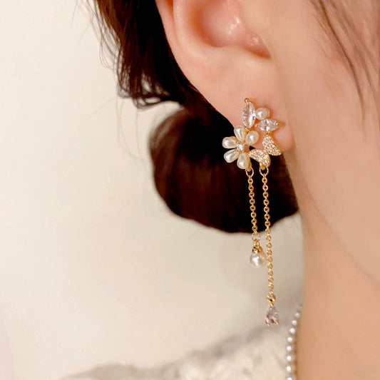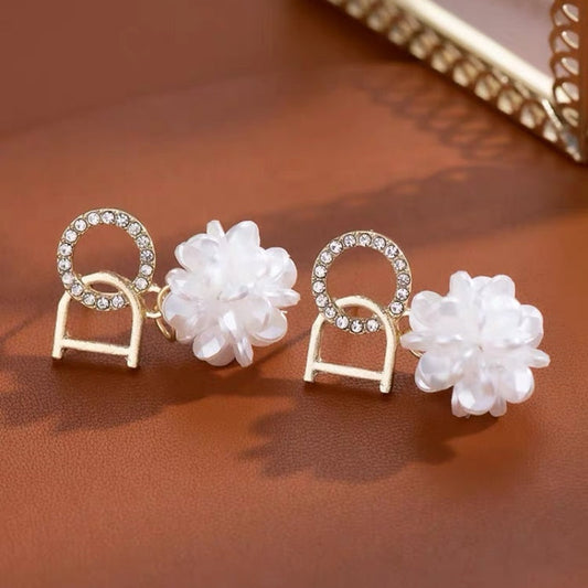 14K Gold-Plated Zircon Pearl Flower Earrings