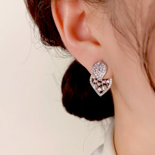 14K Gold-Plated Zircon Artificial Pearl Fishtail Earrings