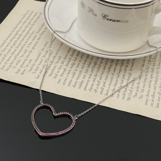 14K Gold-Plated Pink Diamond Love Heart Necklaces