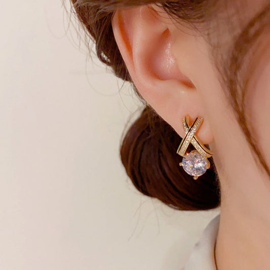 14K Gold-Plated Elegant Zircon Cross Earrings