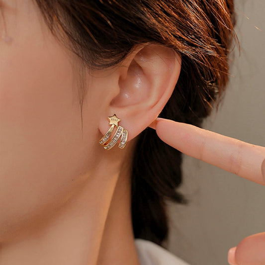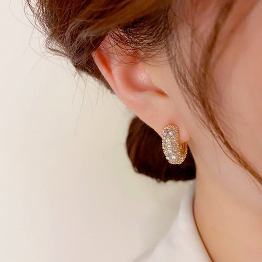 14K Gold-Plated Luxury Zircon C-Shaped Earrings