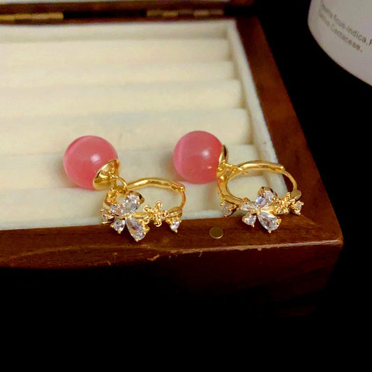 14K Gold-Plated Luxury Cat's Eye Zircon Flower Earrings