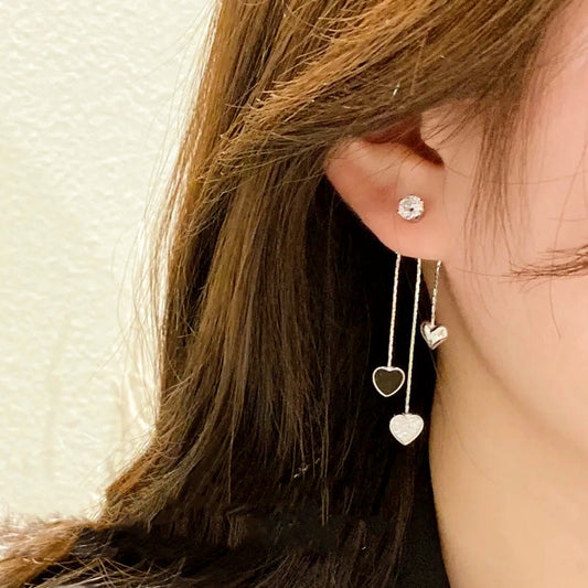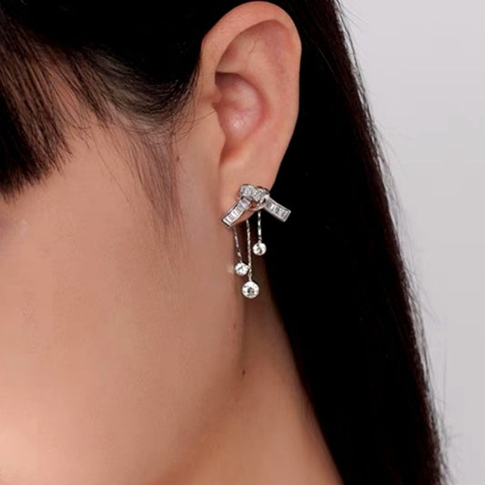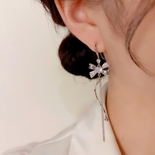 14K Gold-Plated Luxury Zircon Heart Bow Tassel Ear Hook Earrings