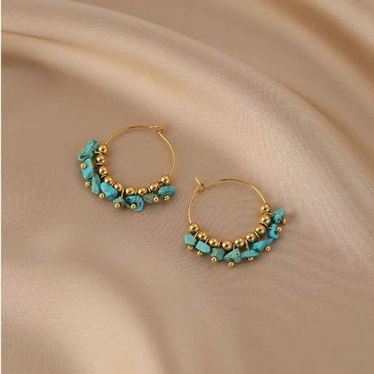 14K Gold-Plated Elegant Cat's Eye stone Flower Square Earrings