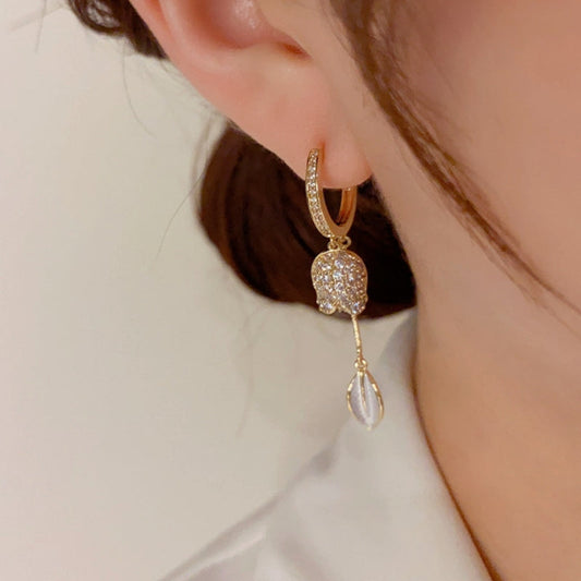 14K Gold-Plated Elegant Zircon Flower And Leaf Earrings