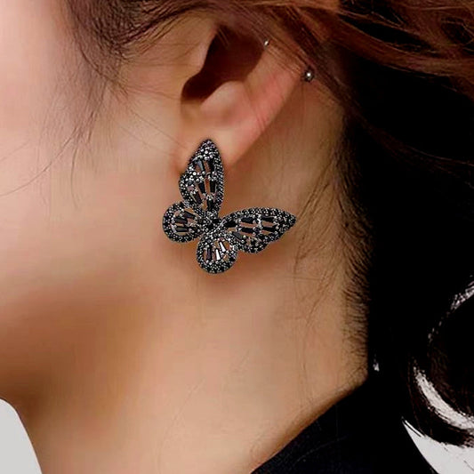 14K Gold-Plated Luxury Crystal Black Butterfly Earrings