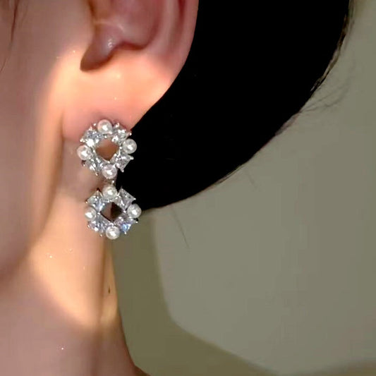 14K Gold-Plated Luxury Zircon Cube Pearl Earrings