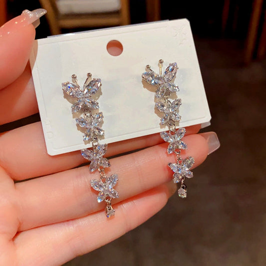 14K Gold-Plated Micro-Diamond Butterfly Tassel Earrings