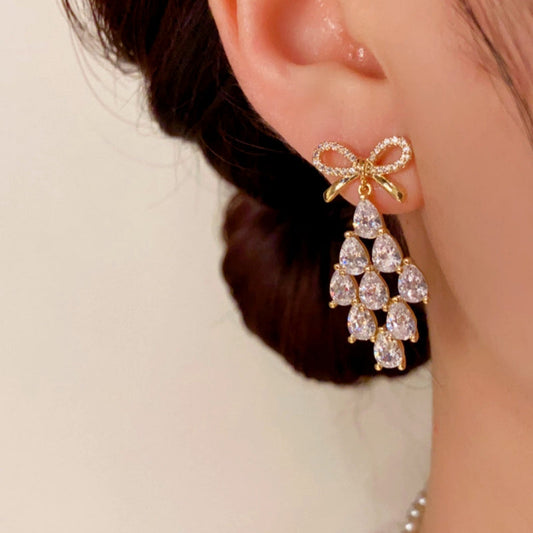 14K Gold-Plated Luxury Zircon Lightning Tassel Earrings
