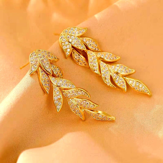 14k Gold-Plated Elegant Diamond Leaf Earrings