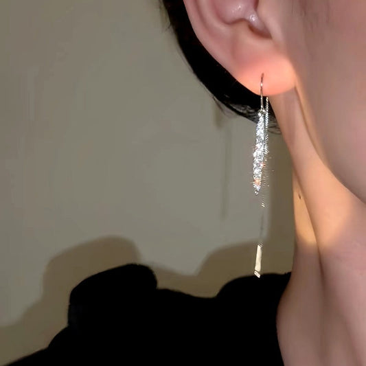 Silver Post Exquisite Simple Shiny Diamond Threader Earrings