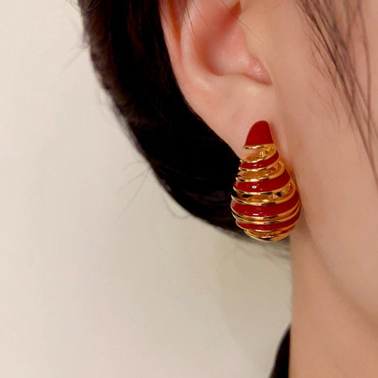 14K Gold-Plated Elegant Water Drop Oil Spiral Earrings