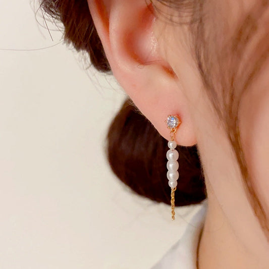 14k Gold-Plated Zircon Pearl Chain Earrings