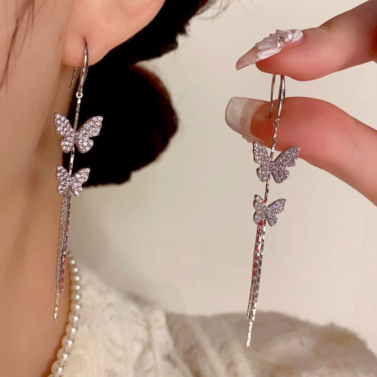 14K Gold-Plated Elegant Zircon Butterfly Ear Hook Tassel Earrings