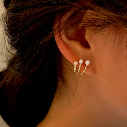 14K Gold-plated Elegant Pearl Small Hoop Earrings