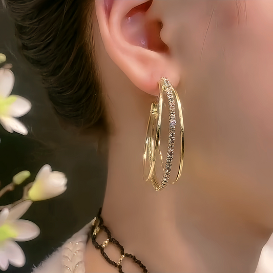 14K Gold-Plated Three-Layer Diamond Hoop Earrings