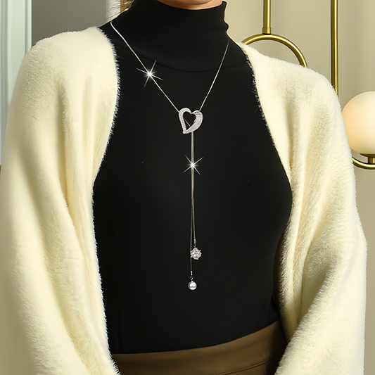 14K Gold-Plated Diamond Heart Pearl Sweater Necklace