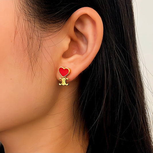 14K Gold-Plated Red Heart Arc De Triomphe Earrings