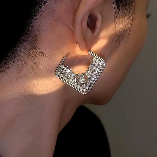 14K Gold-Plated Zircon Crystal Heart Gray Pearl Earrings