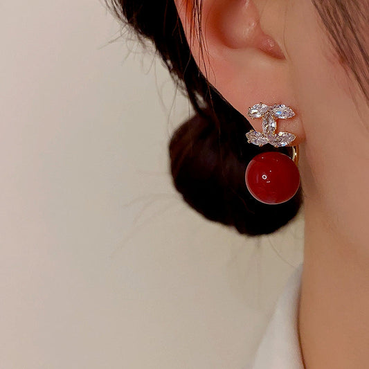14K Gold-Plated Red Diamond Ball Tassel Earrings