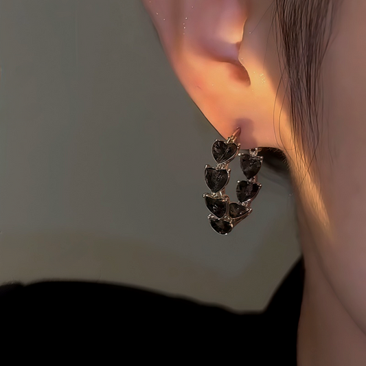 14K Gold-Plated Zircon Black Heart Hoop Earrings