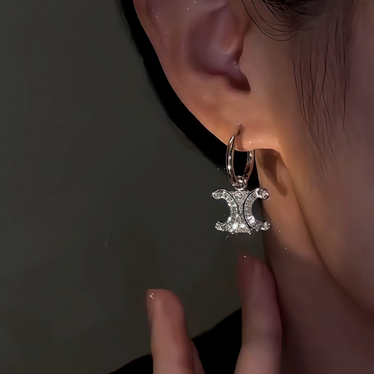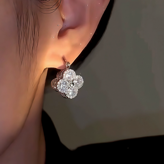 14K Gold-Plated Zircon Four-Leaf Clover C-Shaped Earrings