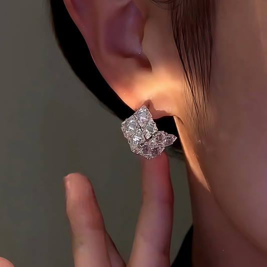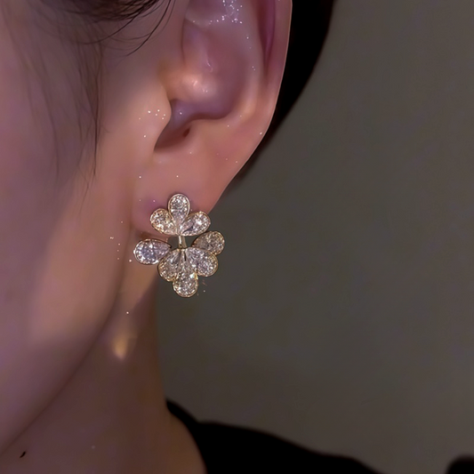 14K Gold-Plated Zircon Double-Sided Lucky Flower Earrings