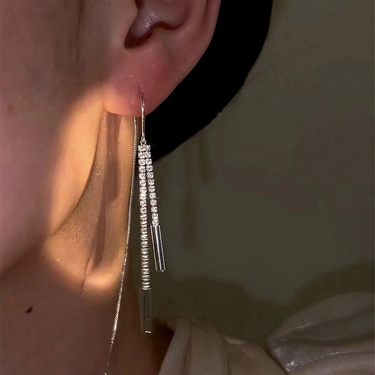 14K Gold-Plated Zircon Diamond Butterfly Tassel Earrings