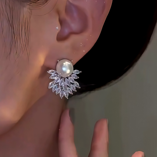 14K Gold-Plated Elegant Zircon Double-Layer Pearl Earrings