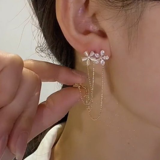 Sterling Silver Four-Leaf Flower Threader Earrings