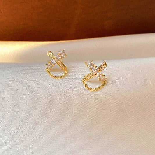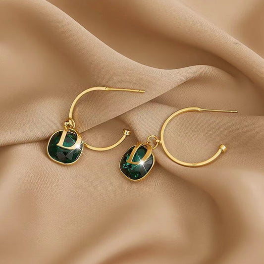 14K Gold-plated Luxury Green Daimond D Letter Earrings