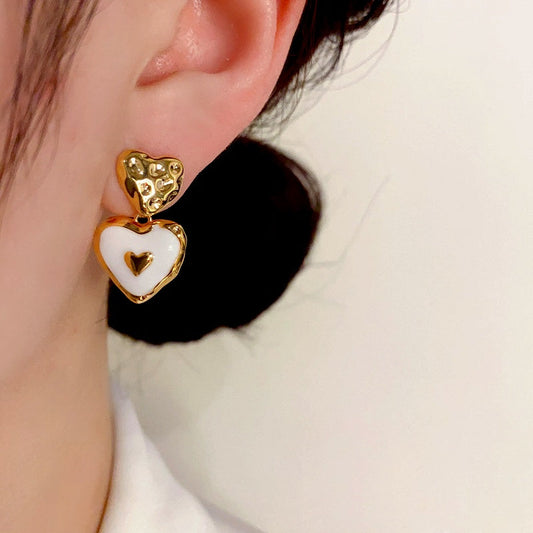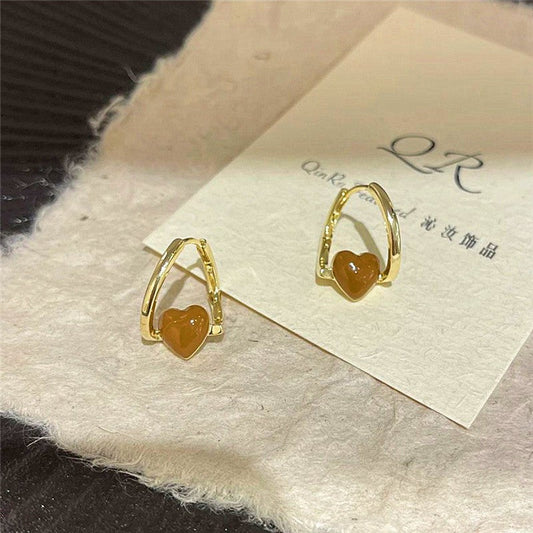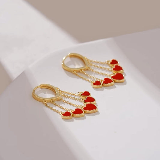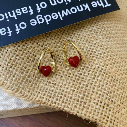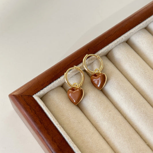 14K Gold-plated Burgundy Dripping Glaze Love Earrings